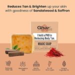 - Premium Ingredients: The discerning choice of premium ingredients sets Ghar Soaps apart. We consciously avoid harmful and cheaper chemicals in our skin lightening soap/ skin brightening soap, opting instead for components that contribute to the richness and efficacy of our products. The result is a luxurious handmade soaps / tan removal soap that not only cleanses but also pampers your skin with the goodness of high-quality, thoughtfully selected ingredients.